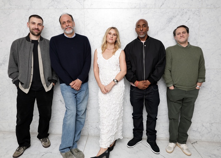 Production designer Stefano Baisi, director Luca Guadagnino, screenwriter Nora Garrett, cinematographer Malik Hassan Sayeed and lead actor Michael Stuhlbarg at the Los Angeles screening of “After the Hunt”, courtesy of Amazon MGM Studios.