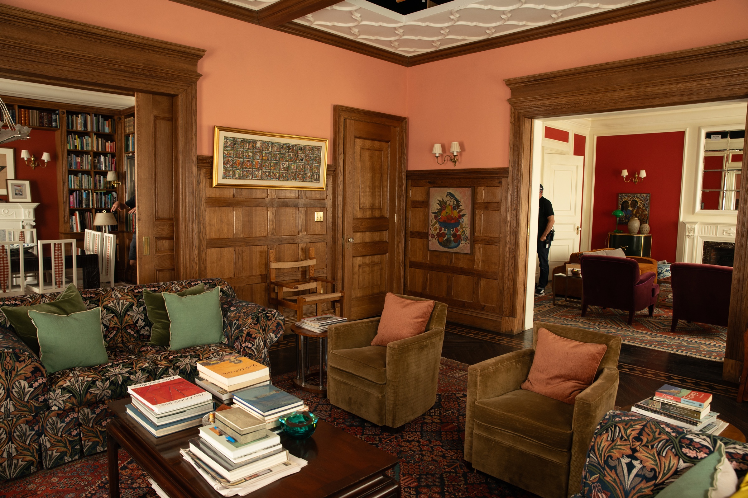 The second layer is Frederik’s parents from the Kennedy era, inspired by the style of Lee Radziwill, with William Morris florals and fabrics. And then Frederik and Alma together bring in the last layer. We thought that they would travel the world together, be it Haiti or North Africa, and they would bring back pieces of art from different places. And as things get older, they replace them, be it re-upholstering furniture, or new curtains, or new furniture.