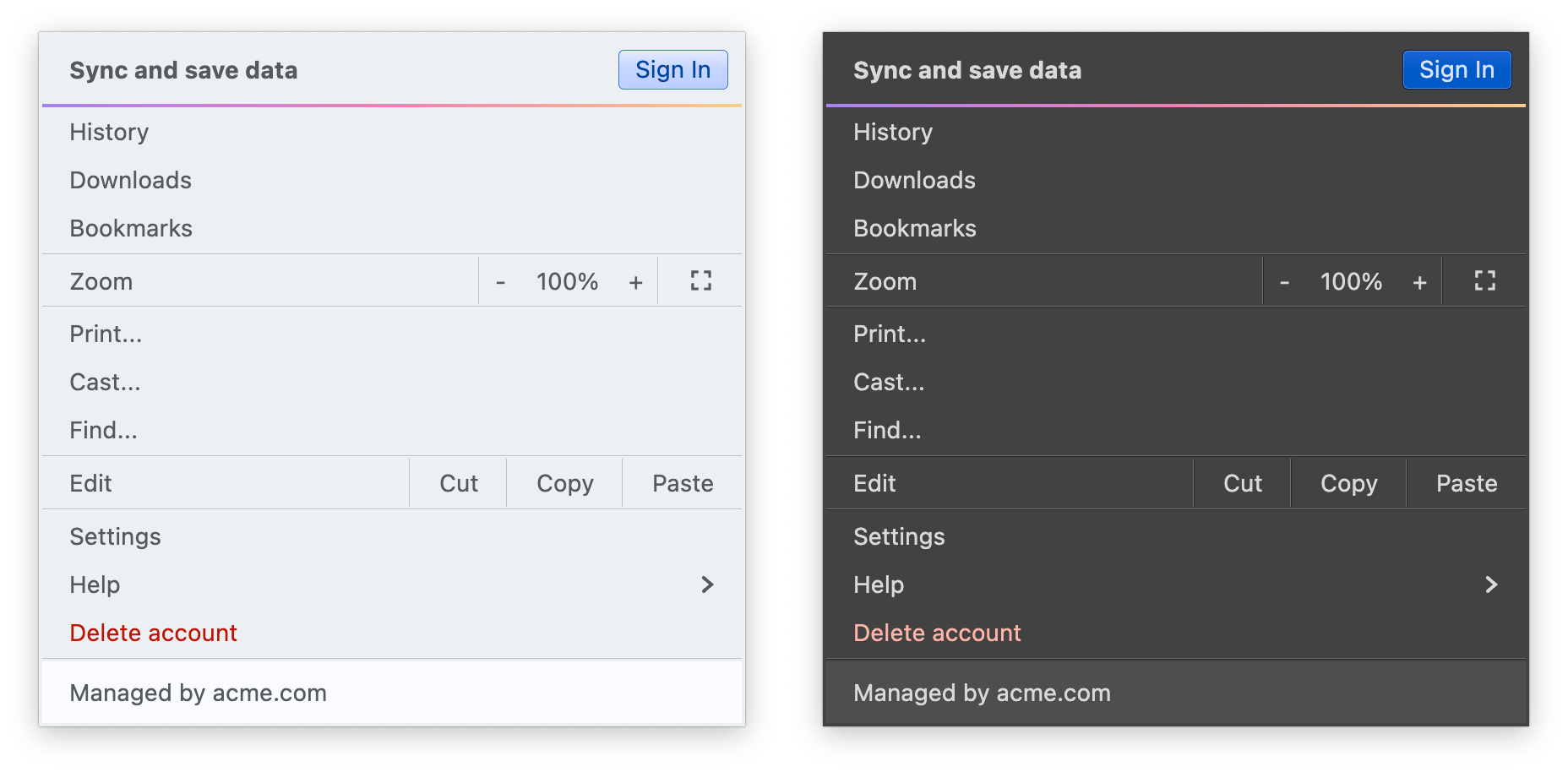It introduces APIs for system tokens – info, warning, error, and success – that can be applied to any element in the UI hierarchy, like shown here for the “Sign In” button (info styling) and “Delete account” (error styling), seamlessly adapting to light and dark skins: