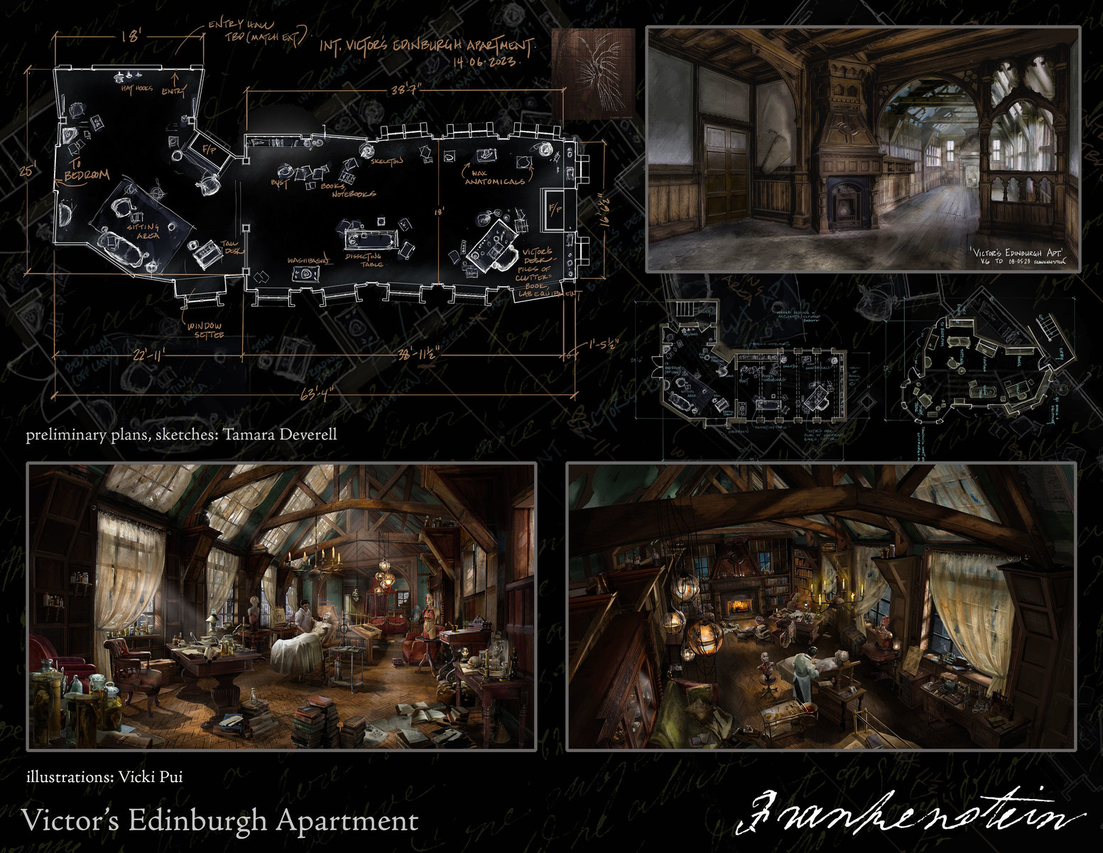 Floor plans of the Frankenstein’s Edinburgh apartment in “Frankenstein”, courtesy of Tamara Deverell and Netflix.