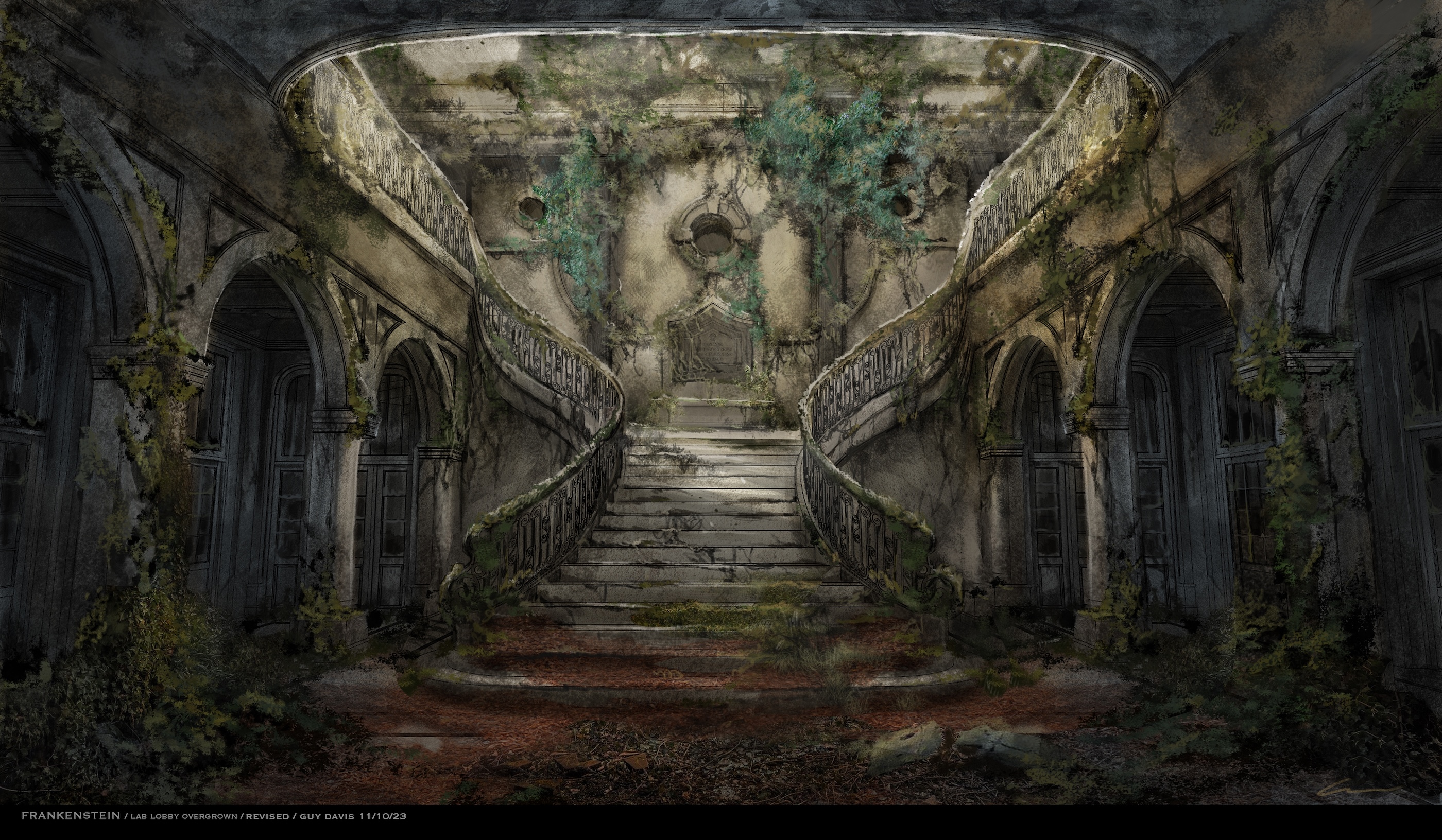 I was so involved in living and breathing while I was doing “Frankenstein” every moment of my day, 24/7. I was dreaming about what I was going to do for sets, there were so many sets and layers within sets, it took over my psyche. We had approximately 110 sets and locations, and 20 or more studio sets. The lab in the water tower was comprised of eight different separate set builds, both in studio and on location, exterior and interior. It had several different looks. It started as an abandoned water tower, and then there’s a scene where it’s renovated. Following this, there’s a scene where it’s the operational lab during the moment of creation. Finally, there’s the destruction scene and the aftermath. The same goes for the tower lobby. When you come in, it’s run down but intact. And then later on, it is post explosion, and it’s winter when the creature goes back and finds out his true story of creation and how he came to be.